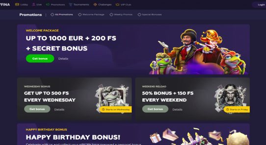 Start your Playfina journey by claiming the generous welcome bonuses offered to new players. These bonuses often include free spins, bonus funds, or a combination of both, giving you a head start in exploring the wide range of games available on the platform.