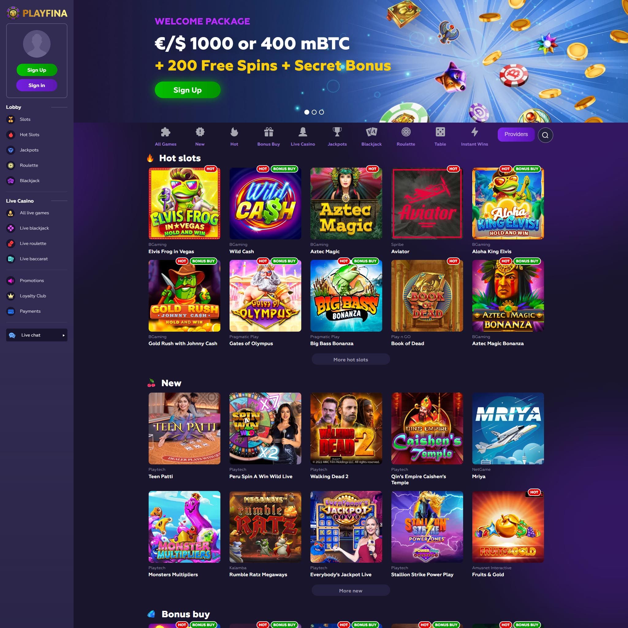 Playfina is a popular legal online casino. Want to get details about casino bonuses, free spins, best pokies and payment methods read our review. Get your 50 Bonus Spins here at Playfina Casino! ⭐ Win big casino bonuses on the list of best online casino games. Looking for bonus codes and 50 free spins at Playfina Casino? Our detailed review has all the information you need to make the most of your gaming.
