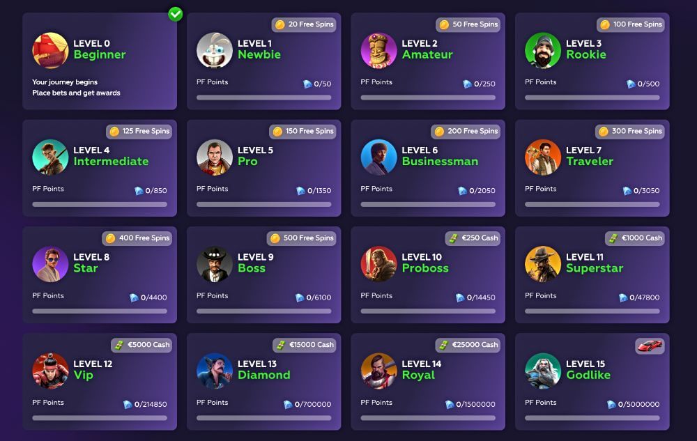 Happy Birthday Bonus. Regular casino players can expect to get a personalized Birthday bonus depending on the loyalty program status. The minimum required level is 6, then you may get $30. If you are lucky to have a 33 level, the site gifts you $300.